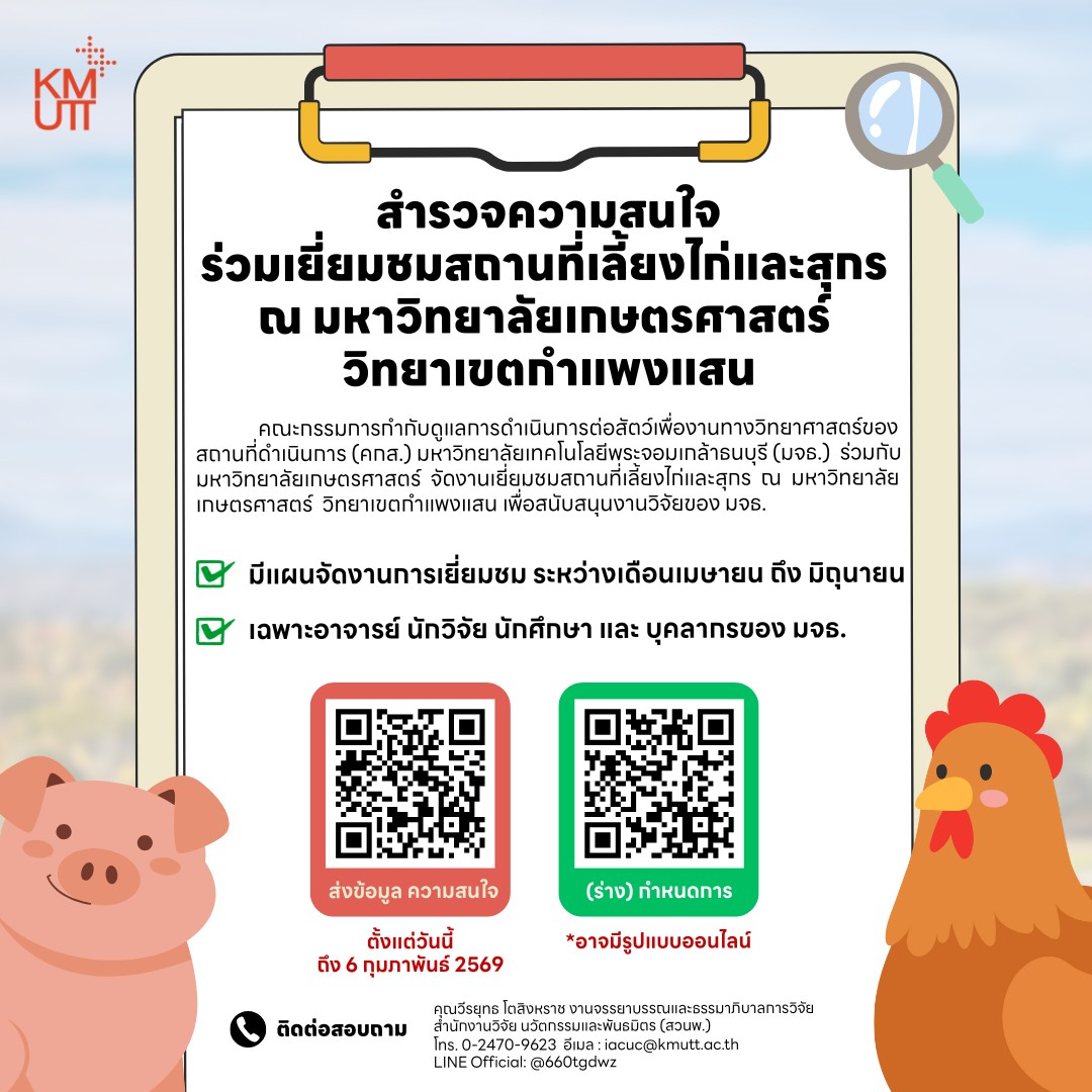 🐖🐓คณะกรรมการกำกับดูแลการดำเนินการต่อสัตว์เพื่องานทางวิท Read more about 📣 สำรวจความสนใจ เยี่ยมชม สถานที่เลี้ยงไก่และสุกร 🐖🐓 ณ มหาวิทยาลัยเกษตรศาสตร์ วิทยาเขตกำแพงแสน[…]